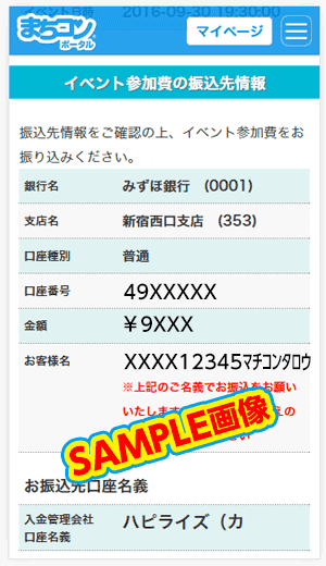 振込先情報を確認していただき、イベント参加費をお振り込みください。